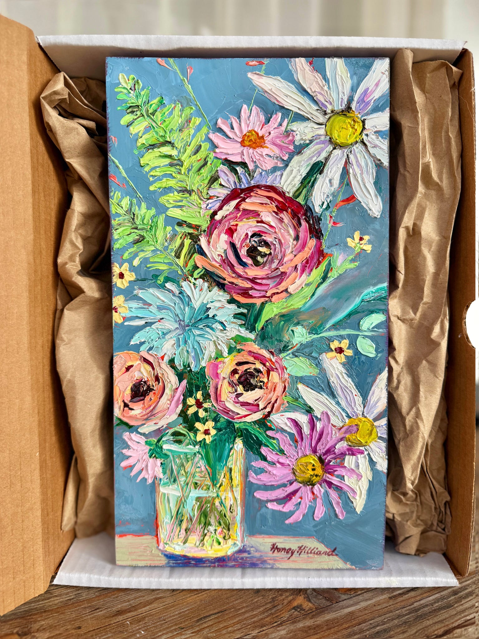 Thick Impasto palette-knifed oil painting on wood canvas 1.5" deep