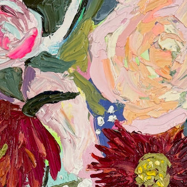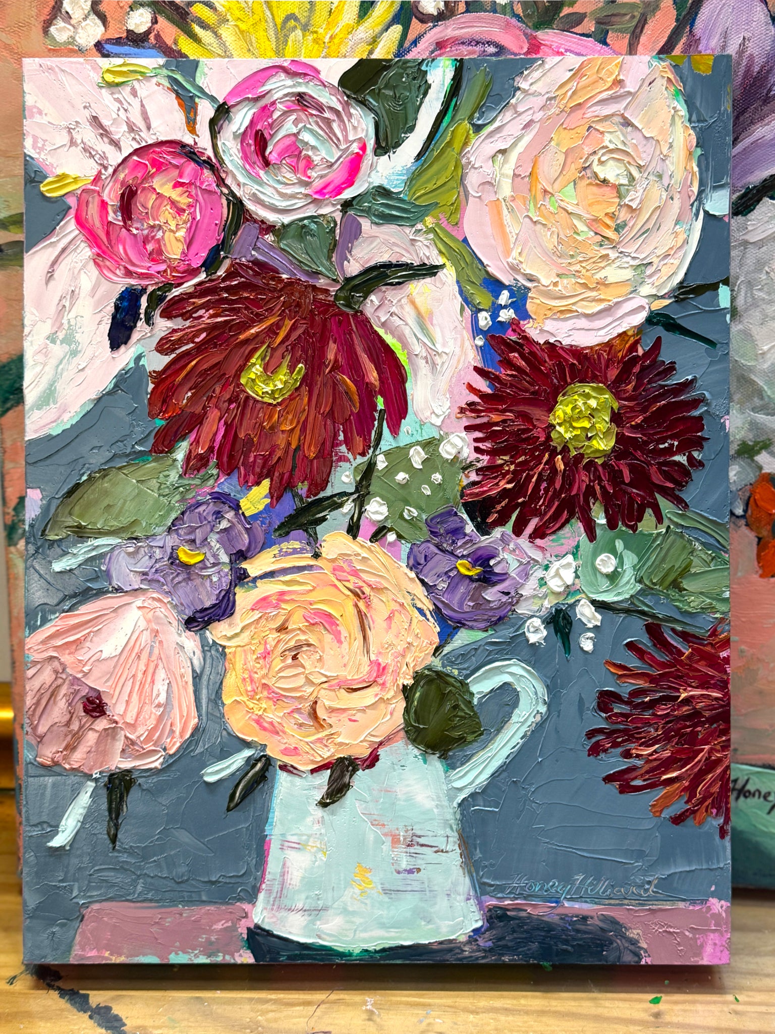 Thick Impasto palette-knifed oil painting on wood canvas