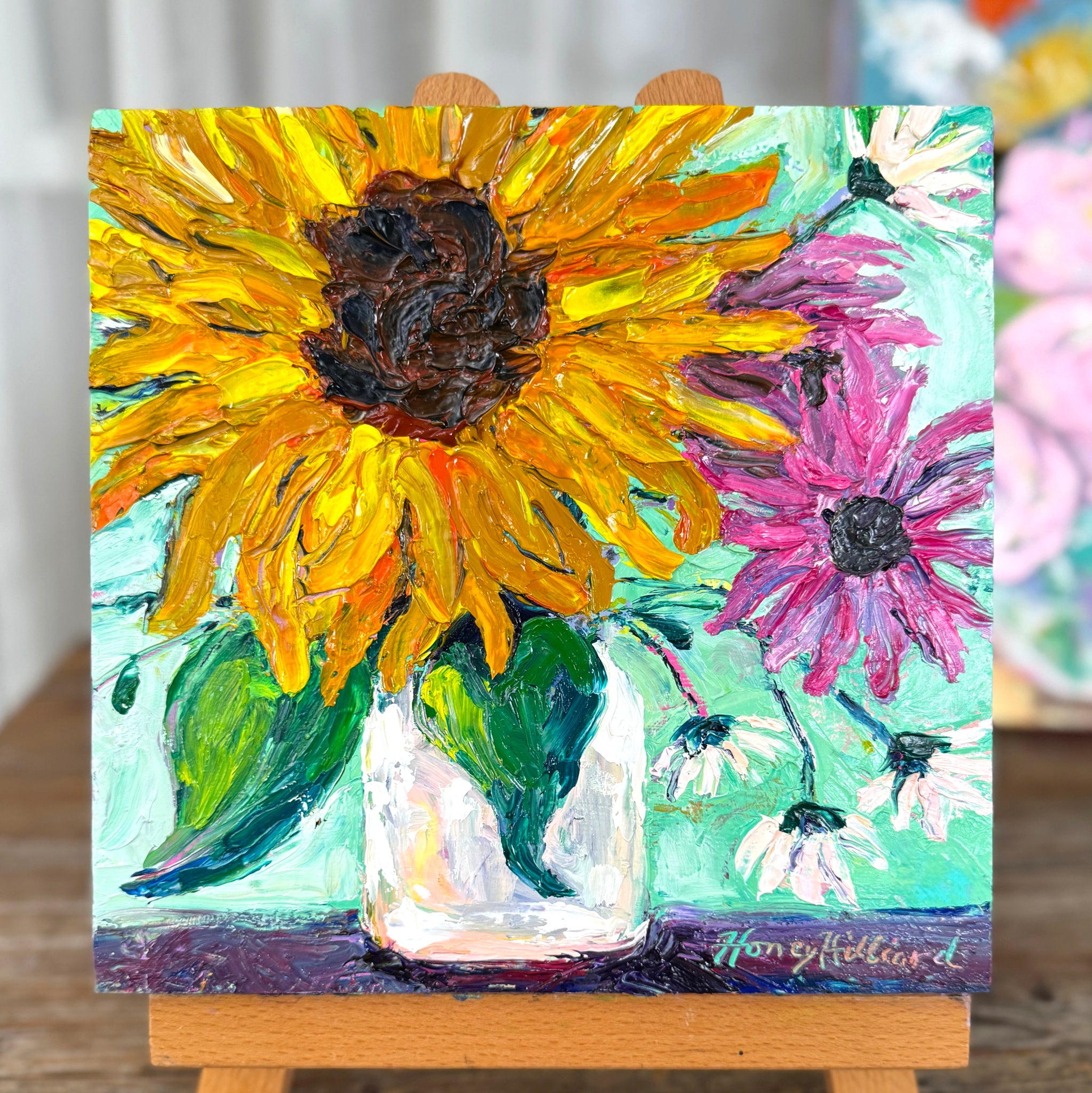 Thick Impasto palette-knifed oil painting on wood canvas 1.5" deep